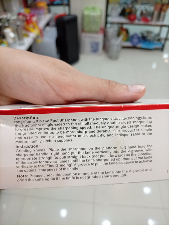 که دارای ۲تیغه سرامیکی و یک تیغه فلزی برای تیزکردن •چاقوهای استیل• و همچنین •چاقوهای میوه خوری• می باشد و همچنین میتوان برای تیز کردن تیغه های •قیچی• هم استفاده کرد.