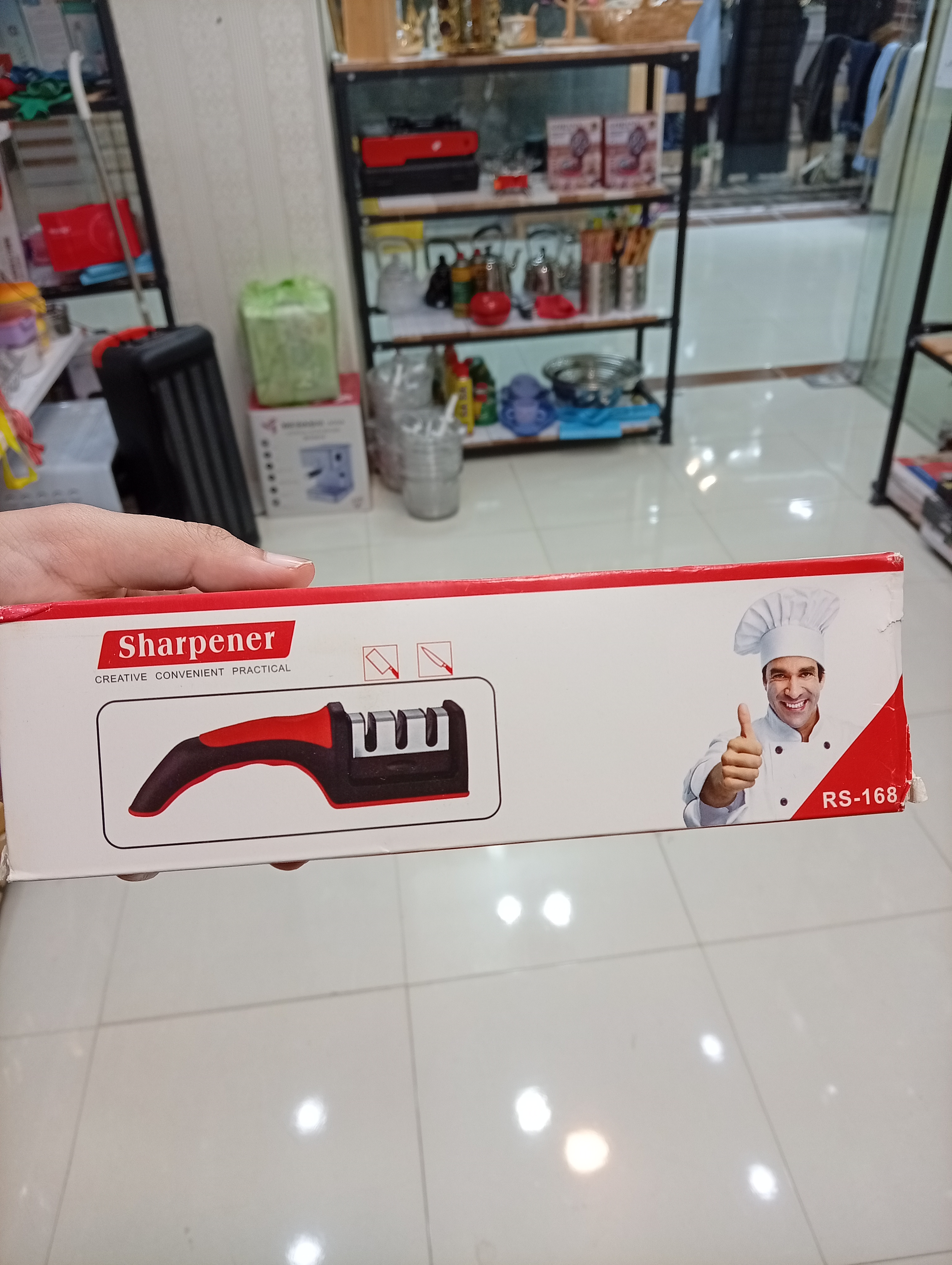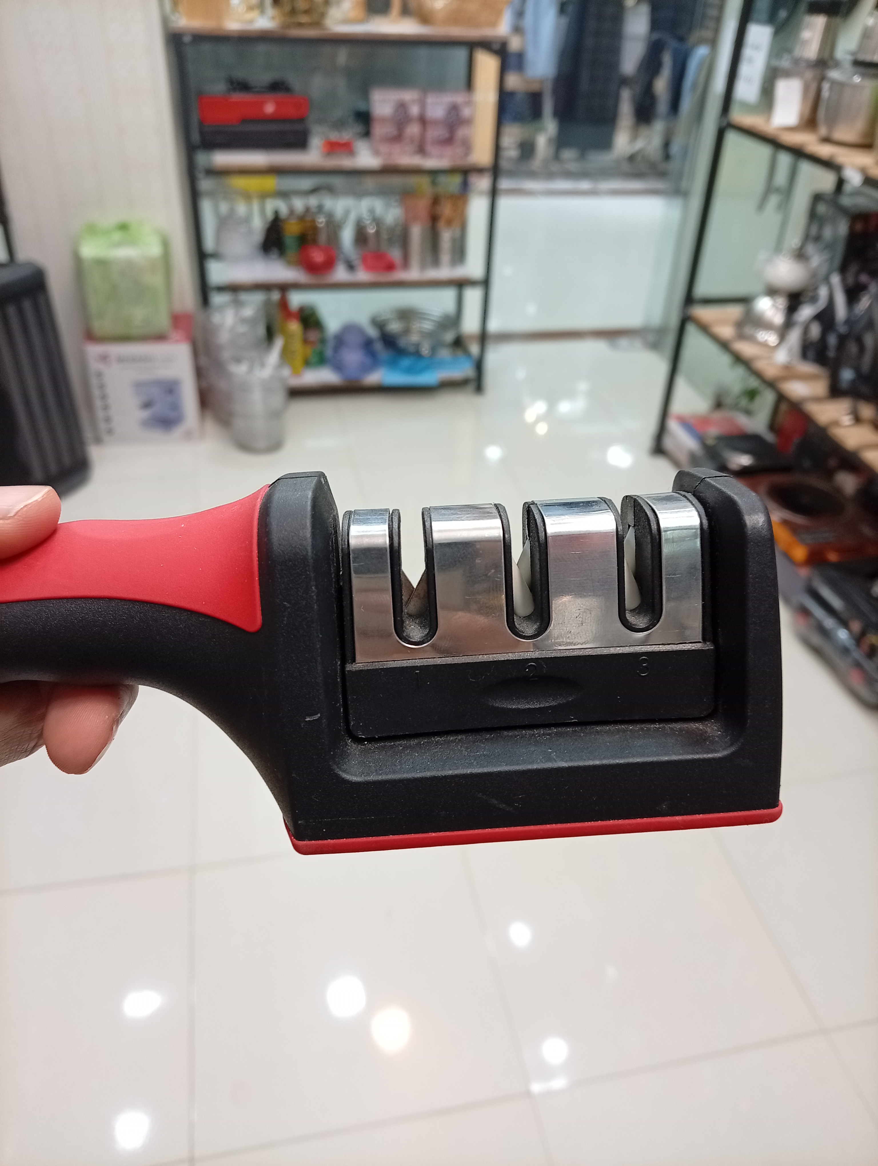 که دارای ۲تیغه سرامیکی و یک تیغه فلزی برای تیزکردن •چاقوهای استیل• و همچنین •چاقوهای میوه خوری• می باشد و همچنین میتوان برای تیز کردن تیغه های •قیچی• هم استفاده کرد.