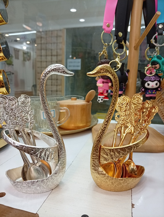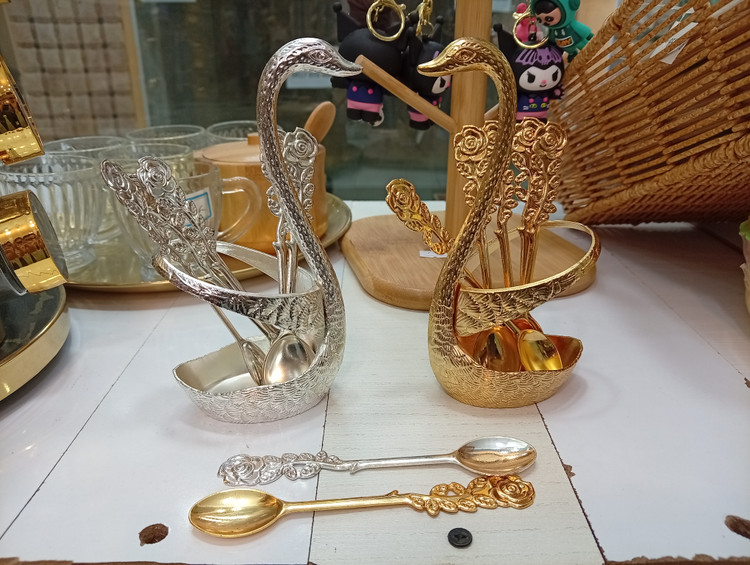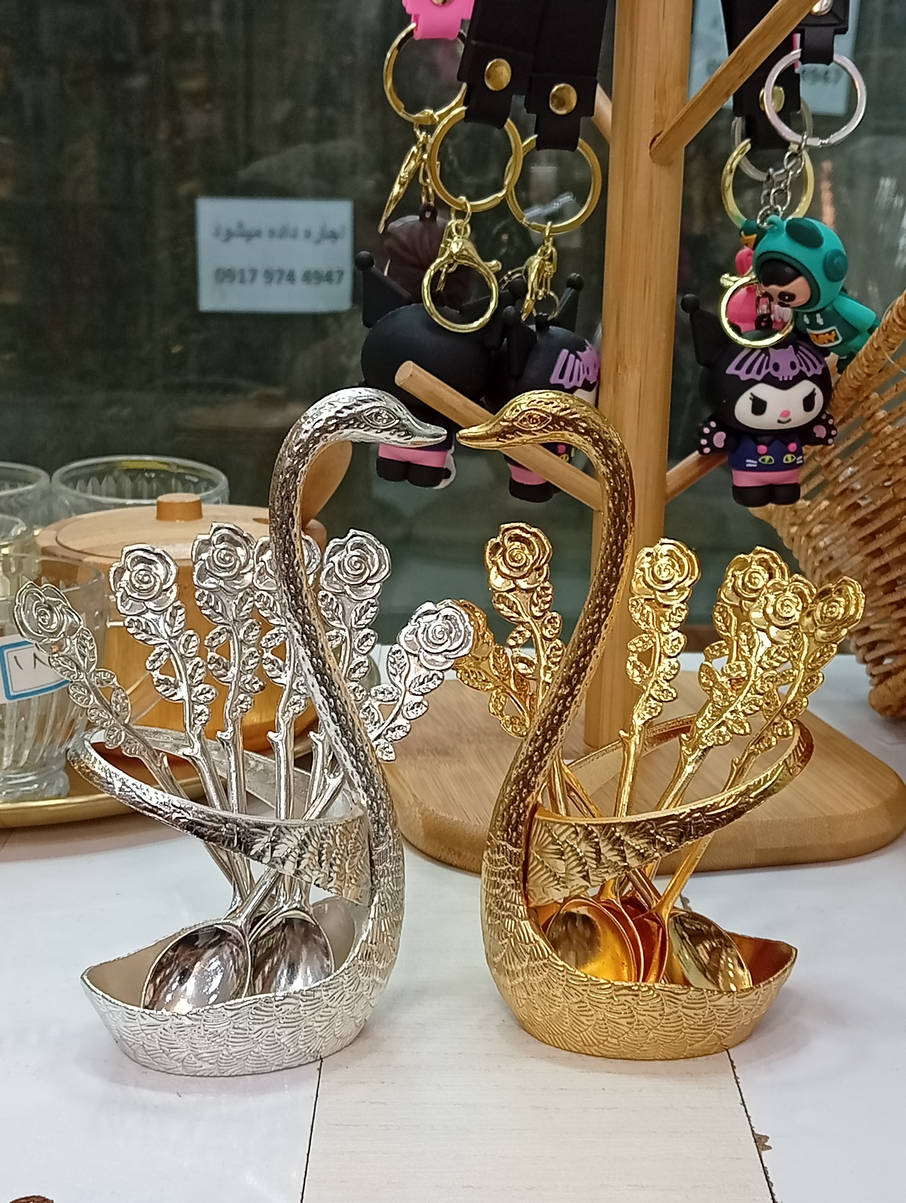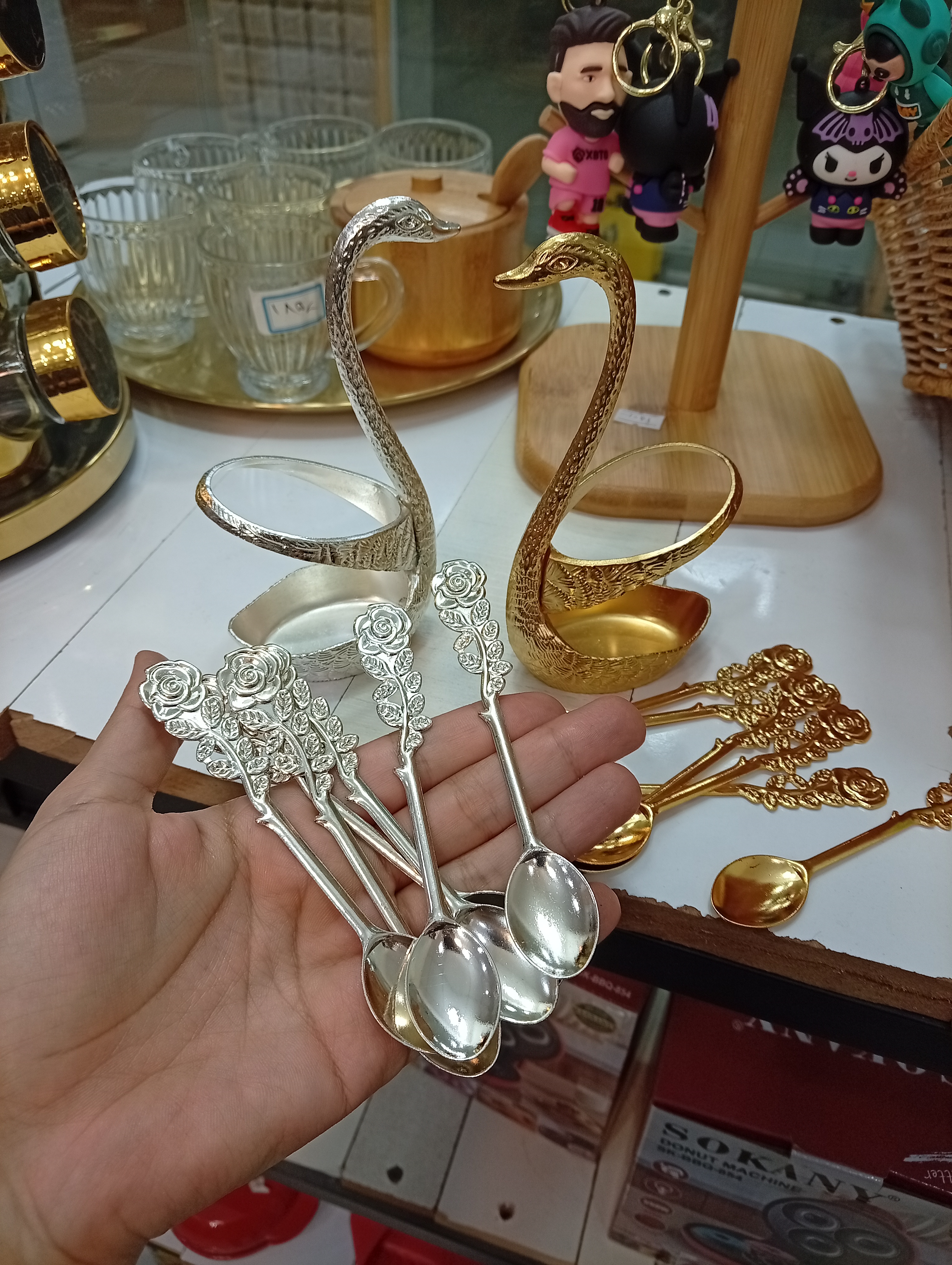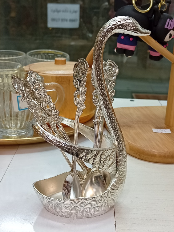قاشق مدل پایه قو بسته 6 عددی به همراه جا قاشقی/قاشق چای خوری