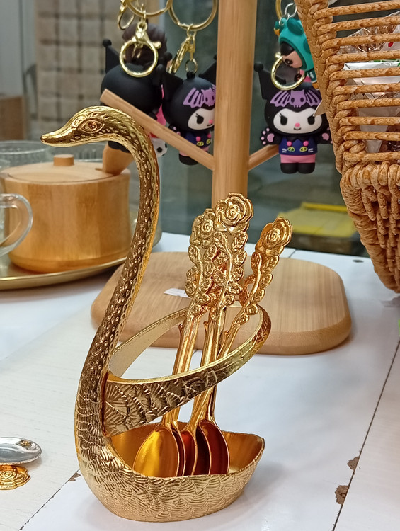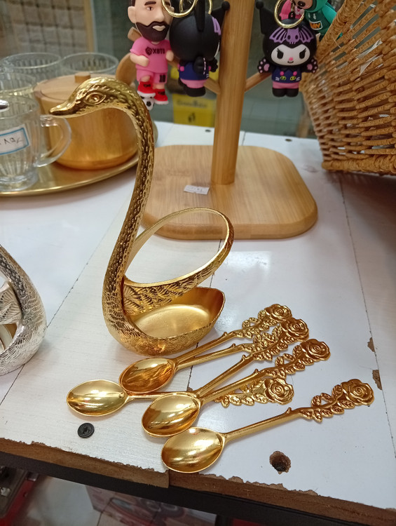 قاشق چای خوری طرح قو 🏜به همراه استند زیبا 🏜رنگ ثابت 🏜جنس زاماک 🏜بدون خوردگی و رنگ زدگی 🏜از برخورد مواد شیمیایی و قوی با سطح قاشق هاجلوگیری شود ست قاشق مدل قو شامل 6 عدد قاشق چای خوری پایه قو برای نگهداری از آن طراحی شده است . این محصول مناسب برای پذیرایی و در سینی سرو قرار میگیرد . این محصول از جنس برنج روکش شده میباشد، و مناسب برای دکوراتیو و استفاده برای پذیرایی است. طول هر قاشق حدود 11 سانتی متر میباشد.در رنگ طلایی موجود است سازنده چین PRcاصلی