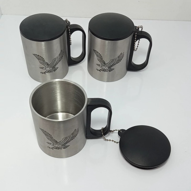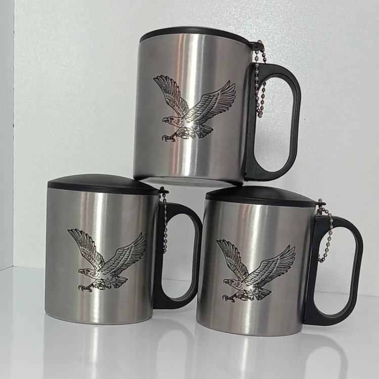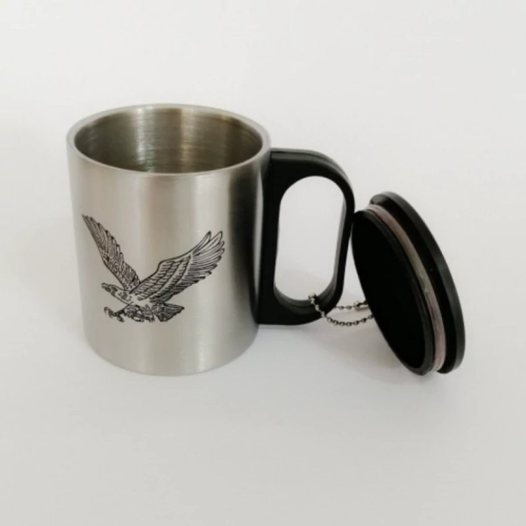 لیوان دو جداره دمنوش ساز استیل عقاب با درب و زنجیر ، ماگ دو جداره ، لیوان عقاب ، لیوان مسافرتی ، کوه نوردی ، پس کرایه
