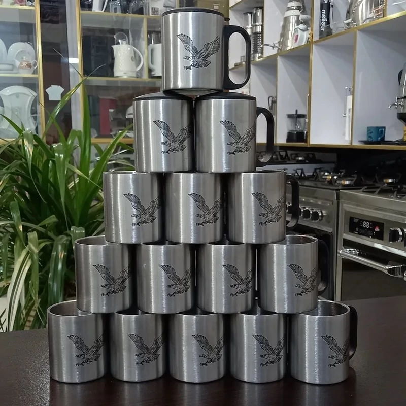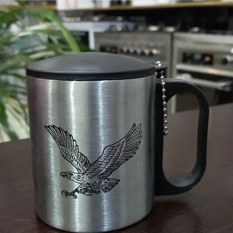 لیوان دو جداره دمنوش ساز استیل عقاب با درب و زنجیر ، ماگ دو جداره ، لیوان عقاب ، لیوان مسافرتی ، کوه نوردی ، پس کرایه