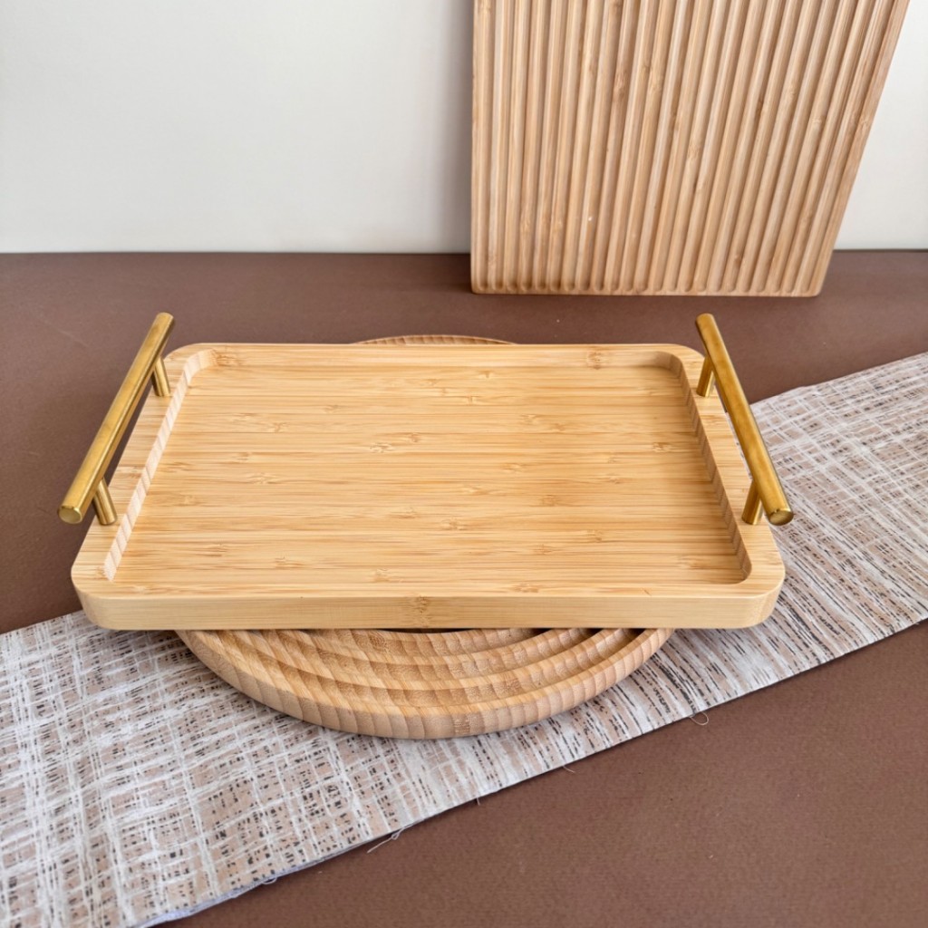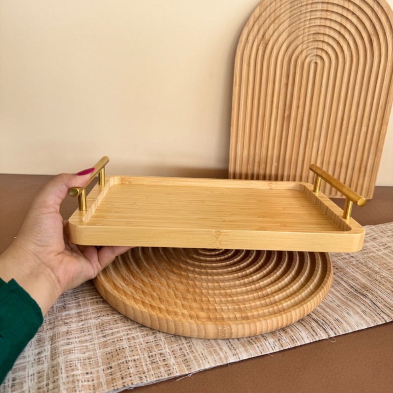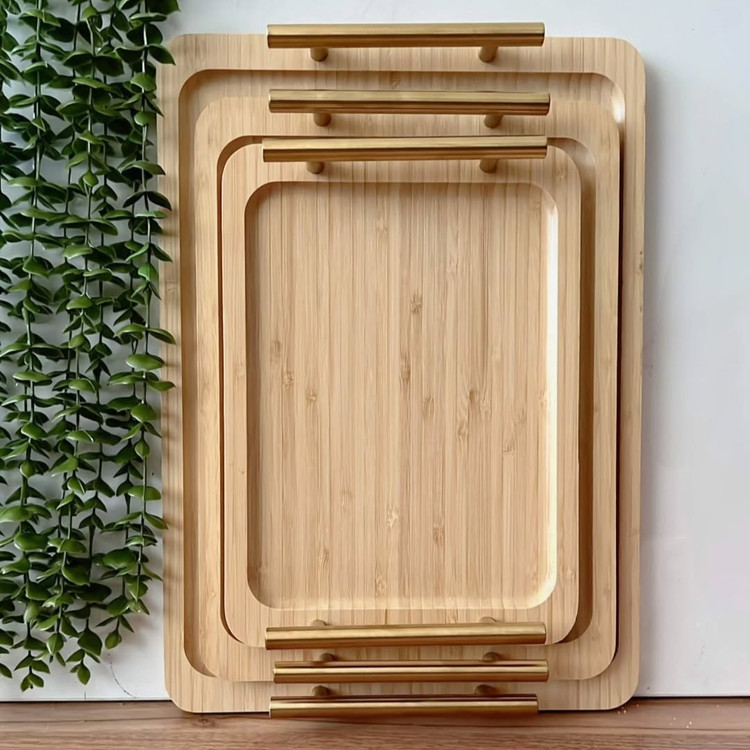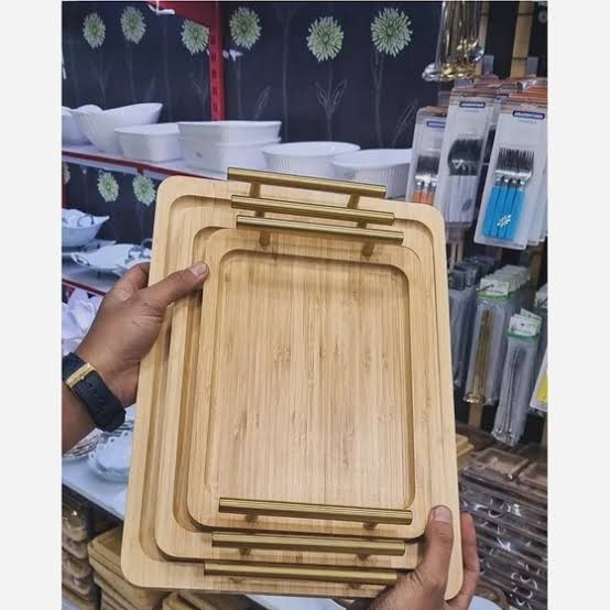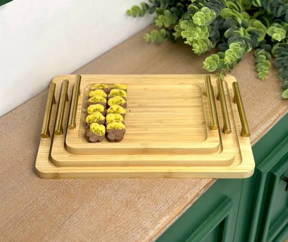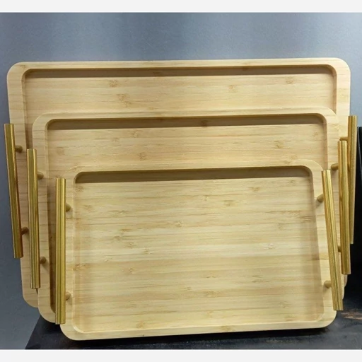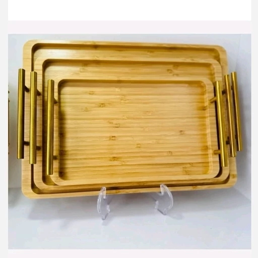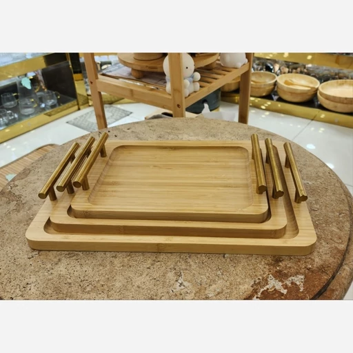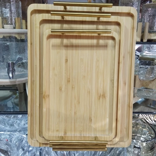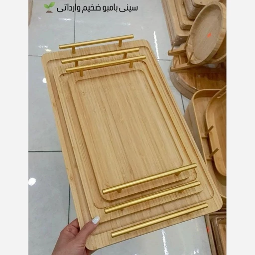 ست سه عددی سینی بامبو دسته طلایی جنس : چوب بامبو جنس دسته: فلزی تعداد: 3 عدد ابعاد سایز بزرگ: 40*28 سانتی متر ابعاد سایز متوسط: 35*24 سانتی متر ابعاد سایز کوچک: 30*19 سانتی متر