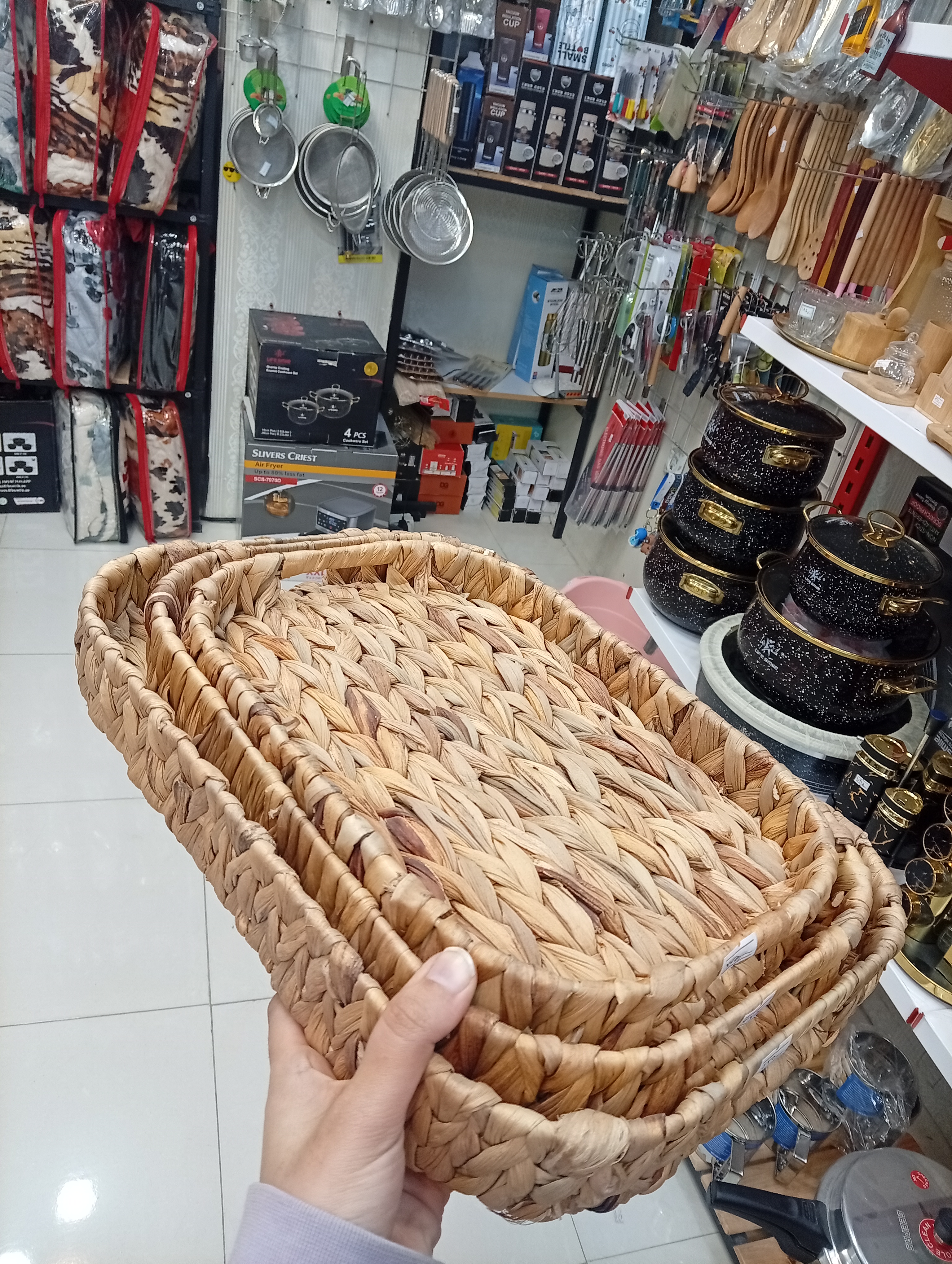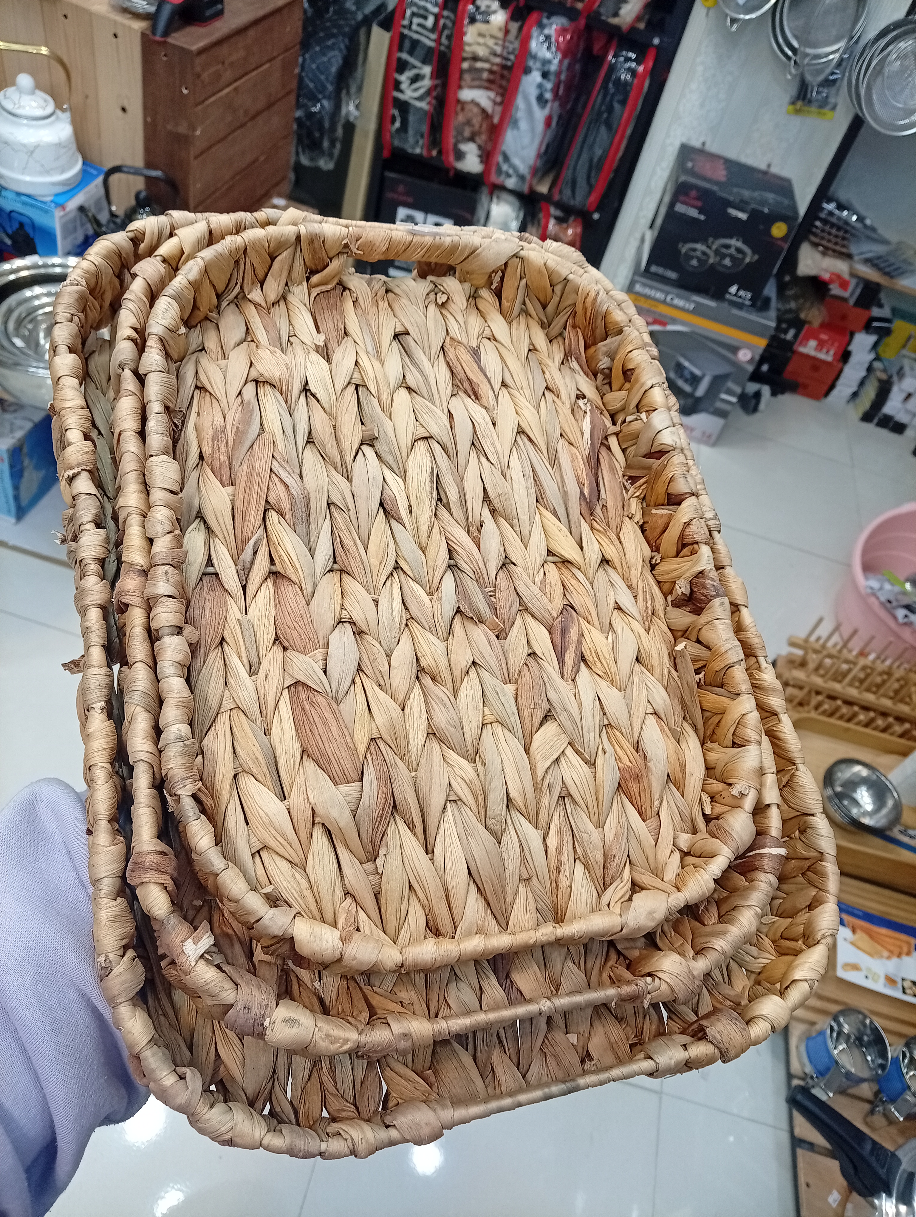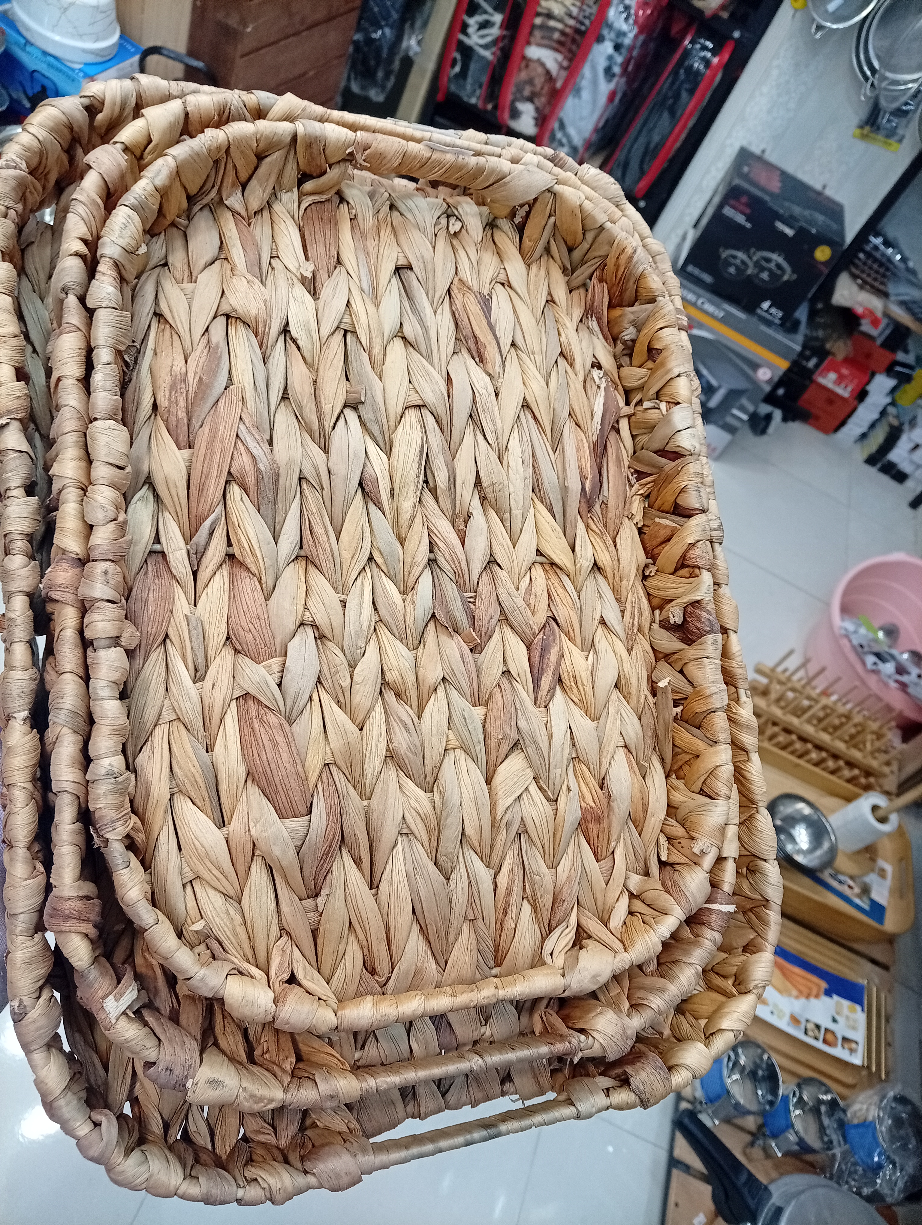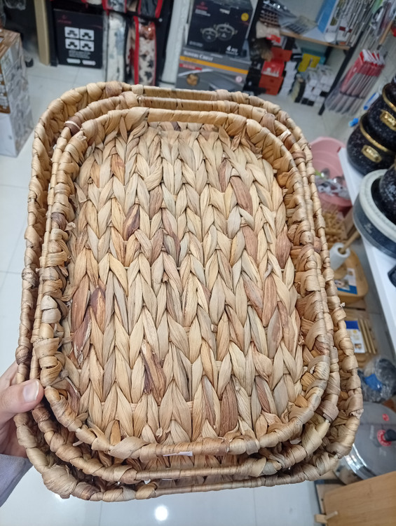 این ست شامل سه عدد سینی در سه سایز مختلف است که با ظرافت خاصی بافته شدهاند و همزمان حس طبیعت و سادگی را به خانه شما میآورند.