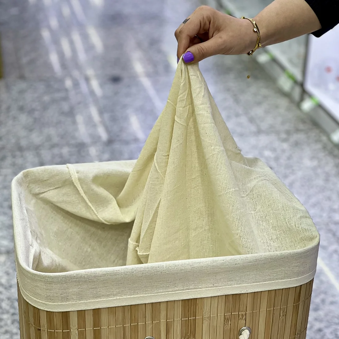 گردش هوا : پارچه لینن داخل سبد به گردش هوا در داخل سبد کمک میکند و از ایجاد بوی نامطبوع جلوگیری