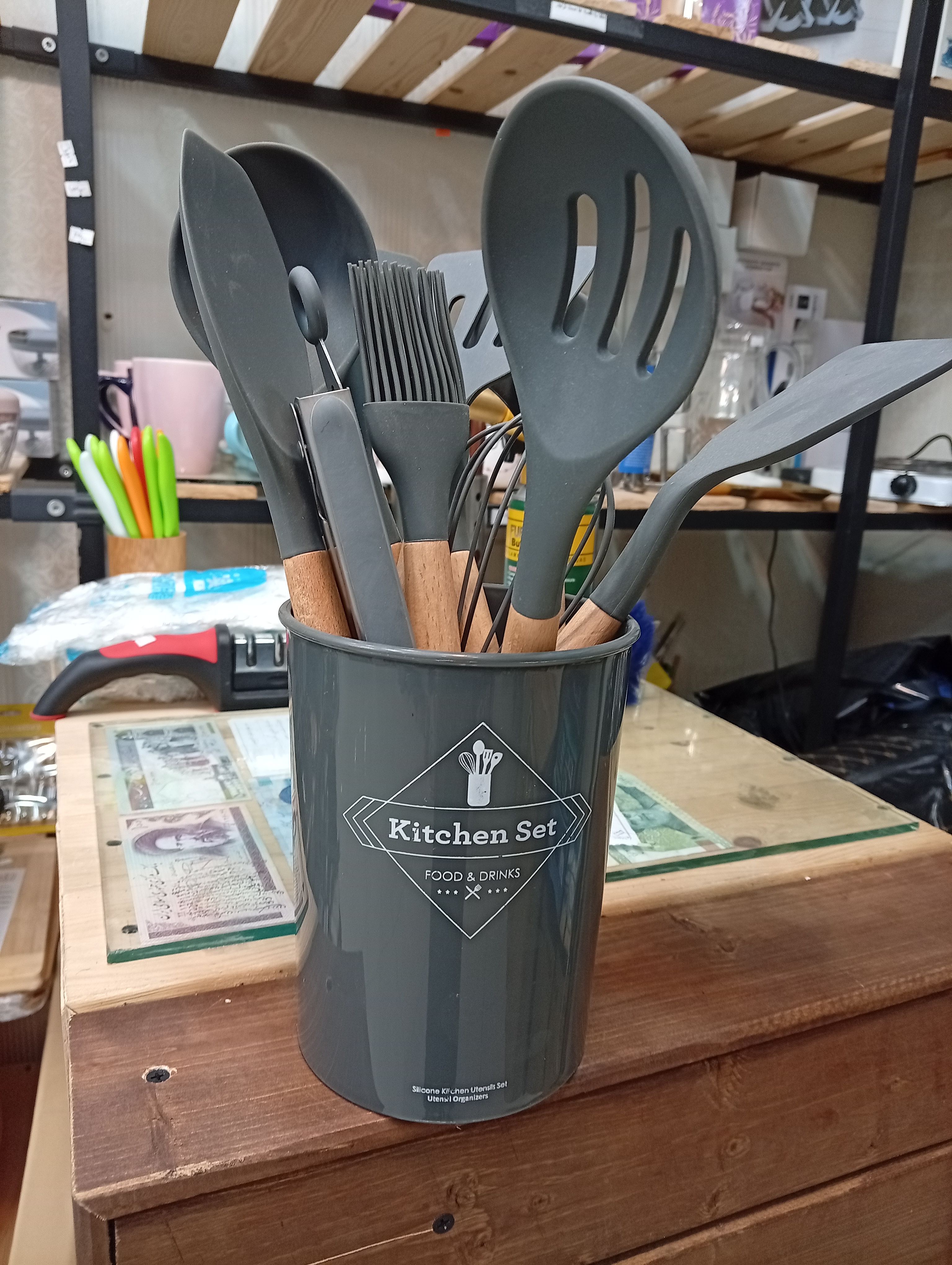 جنس بدنه : سیلیکون درجه ۱ جنس دسته : چوب درجه ۱ دارای استند سطلی پلاستیکی سرویس 12 پارچه شامل : – کفگیر ، ملاقه ، برگردان ، قاشق ، فرچه و لیسک ، انبر ، همزن + سطل جنس ابزار نرم و معطفه و دوام و ماندگاری خیلی بالایی داره رنگ ها : مشکی،طوسی،بنفش، سبزآبی از دمای 30- تا 230+ درجه سانتیگراد تحمل حرارت داره برای تمام کارهای آشپزی کاربرد داره وارداتی اورجینال ابعاد کفگیر ۳۱ طول پهنا ۶ س قطر سطل ۹س دارای جعبه